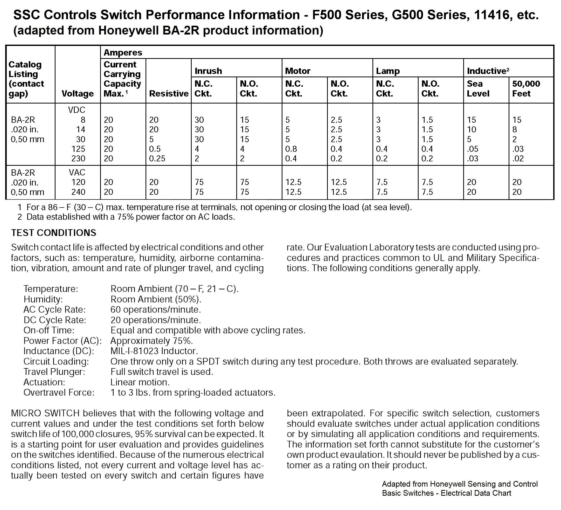 - Electrical Rating, per Switch: 20 A, 125/250 VAC; 1 HP, 125 VAC; 2 HP, 250 VAC; 10 A, 125 VAC “L”; .50 A, 125 VDC; .25 A, 250 VDC